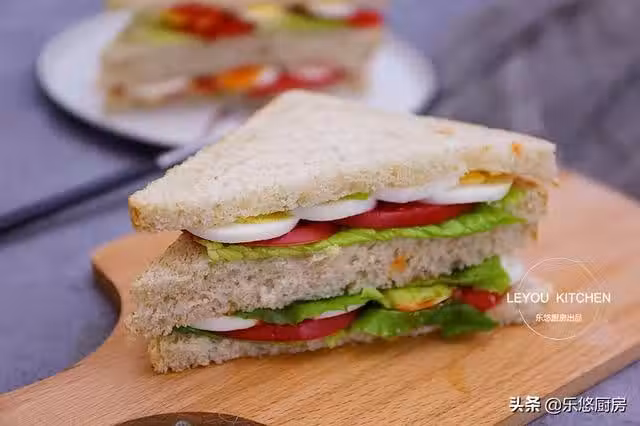 第一步:準備食材。全麥麵包4片,雞蛋2個,西紅柿1個,生菜少許。(這是兩個人的量,親們可以隨自己的需求增減哦。)