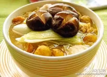 4、加入熟板栗,再中小火煮5分鐘左右,最後加入白菜煮1分鐘左右即可。