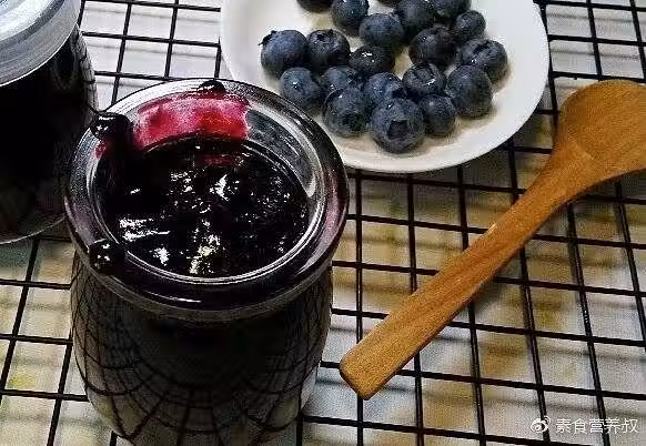 用料:藍莓300g、白砂糖45g、檸檬半個、朗姆酒5ml(可忽略)