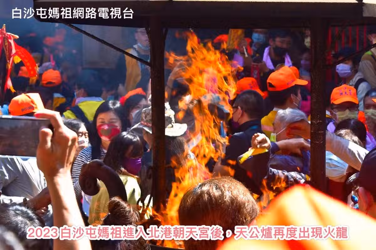 在白沙屯媽祖入廟後,畫面也拍到朝天宮天公爐竄出「火龍」奇景,竄出的火舌宛若一條昂首而立的火龍,頭部、眼睛、嘴部輪廓相當清晰,這是繼2018年媽祖駐駕北斗奠安宮後再次被捕捉到,信眾看到後紛紛到影片下方留言,「感動到落淚」、「我們慈悲的媽祖,圓滿到達北港」、「香燈腳、勇腳也平安,事事圓滿,