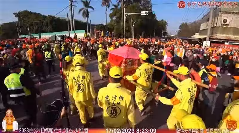 苗栗縣通霄拱天宮白沙屯媽祖,前往北港進香之旅,第6天進入雲林,超過11萬的虔誠「橘色大軍」一路徒步跟隨。其中一名女信徒在北斗市區套上逗趣的外星人氣球,拿著垃圾袋、穿梭在隊伍中幫忙收拾垃圾,格外吸睛,笑容滿面的她,也替香燈腳高喊口號加油打氣。她表示,很感謝媽祖保佑她早產、又嚴重燙傷差點喪命的麼子,從鬼門關前撿回一命平安長大,她決定從此要做白沙屯媽祖最忠心的信徒,為媽祖奉獻一生。