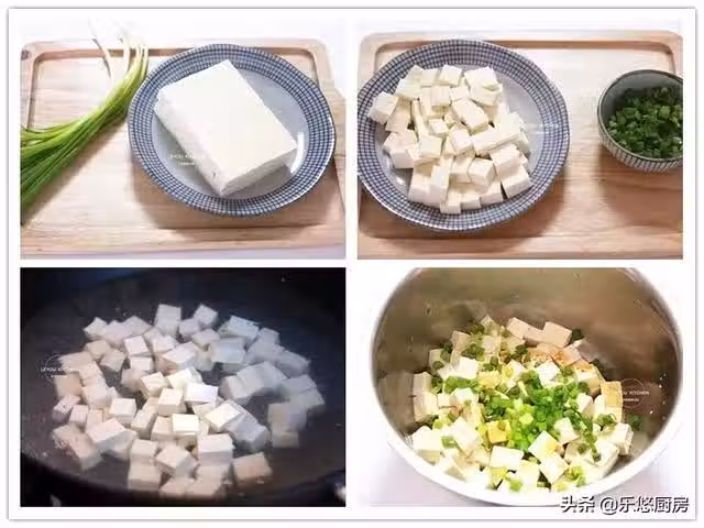 1、豆腐切塊後,焯一下水,可以去除豆腥味,而且在拌的時候,也不容易碎。