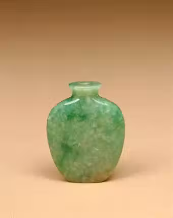 鼻煙壺的使用主要是在清代。清前期的作品以方、圓類型為主,後期的作品形狀多變化。乾隆時期,鼻煙壺的製造有了很大發展,主要表現在材質的多樣化,動物、瓜果造型的作品數量增多。翡翠鼻煙壺的優劣多以材質本身判斷,其紋飾、造型一般都較簡練。