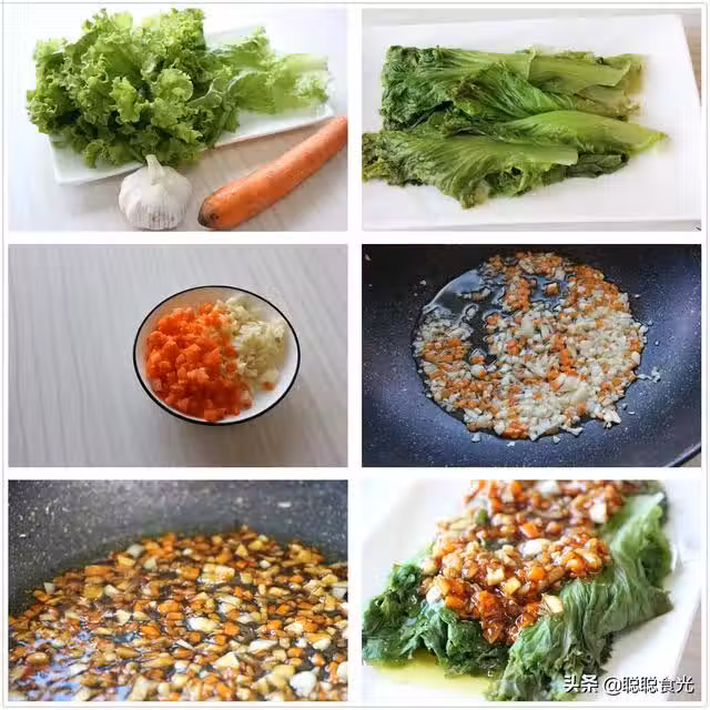 1、把生菜沿著中間的莖撕下來,然後在鍋中倒入清水燒開,在水中滴幾滴油,放入生菜,焯燙八秒鐘左右。焯燙過的生菜葉馬上撈出,過一下涼水,然後瀝干水分擺入盤中備用。鍋中滴油和過涼水這兩步都是為了保證生菜顏色翠綠不黑的關鍵。