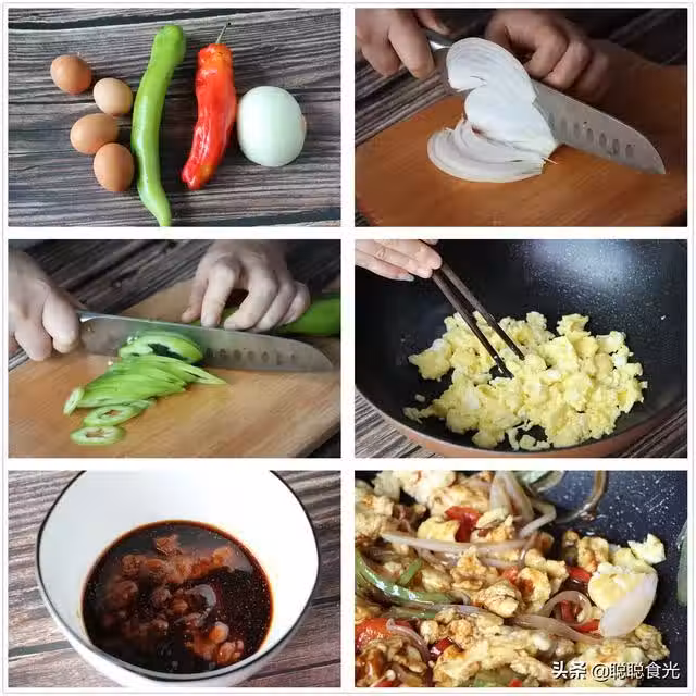 6、倒入之前炒熟的雞蛋炒均,然後把之前調好的醬汁倒入,翻炒至雞蛋和配菜都均勻掛上醬汁,然後就可以出鍋了。