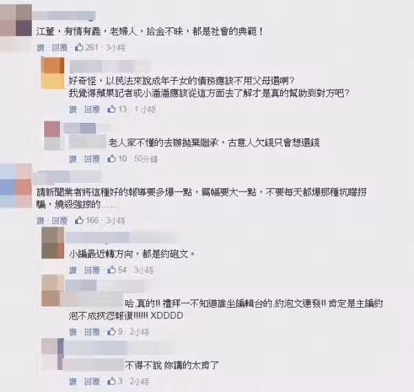 這則新聞報導一出,許多網友也感動地留言:「江董,有情有義,老婦人,拾金不昧,都是社會的典範!」但也有人覺得奇怪:「以民法來說成年子女的債務應該不用父母還啊?」。拾金不昧的精神值得敬佩~把這則正能量故事分享出去吧!