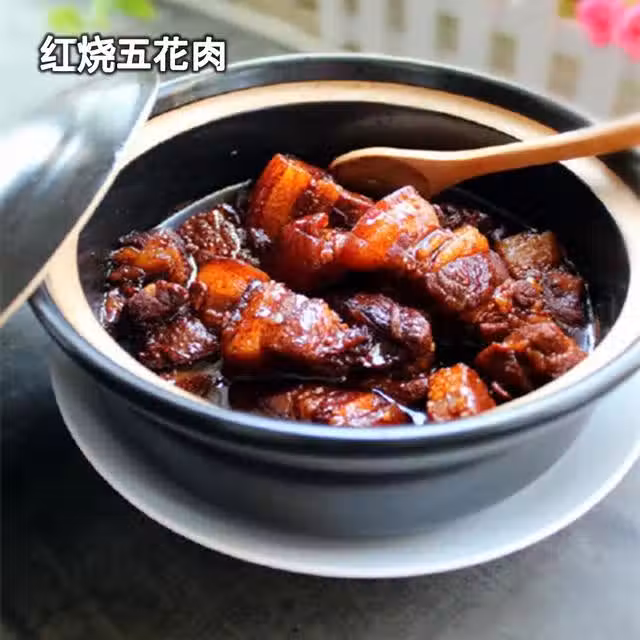 材料五花肉 1斤生抽 4勺老抽 5勺料酒 2勺豆豉 2勺水 3勺