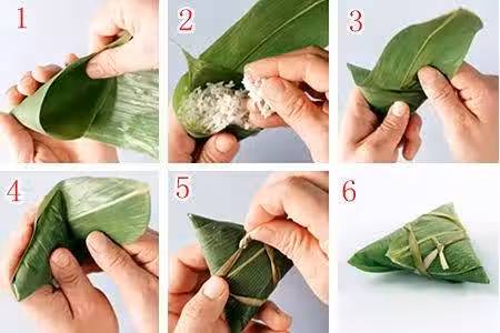3、上部的粽葉向下折,直到完全蓋住開口為止。