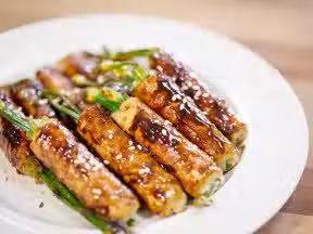 3 熱油鍋,將卷好的韭菜卷一個一個放入,用小火每面都煎熟。