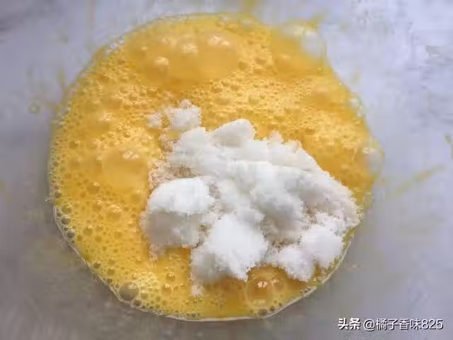 4、啟動電動打蛋器,劃Z字形打發至雞蛋液低落的時候,一分鐘之內不會消失的狀態就可以了,雞蛋液一定要打發到位,否則蛋糕不會蓬鬆,口感偏硬會影響口感。