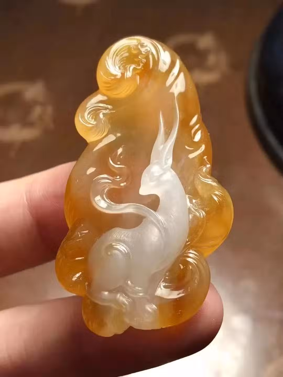 拋光之後看成品,美得讓人挪不開眼睛,冰感很強,一般大馬坎料子做出成品後的效果油性都會很足的,很有光澤,特別的有靈性,感覺到了滿滿的生命力!背面沒有雕刻得太複雜,符合當代的審美,簡約大氣!狐狸的狐諧音『「福」代表著幸福,而狐狸又是長壽的特徵,寓意福壽雙全! - End -