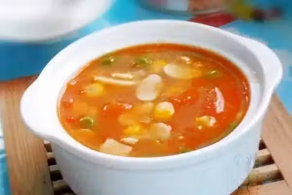 8、玉米澱粉加1勺水調勻,下入湯羹里打芡攪拌,酸甜美味的素燴玉米羹就做好了。