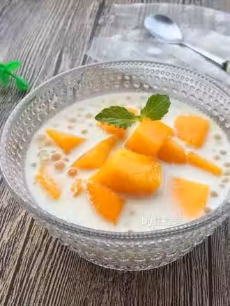 1. 水燒開投入西米煮至中間有個小白點關火燜至完全透明。