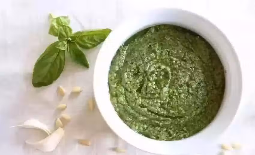 菠菜 500克,羅勒(九層塔) 100克,腰果 250克,松仁 250克,鹽 30克,,橄欖油 100克。