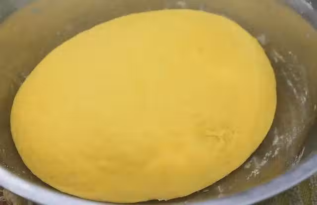 1、南瓜一小塊,削去外皮切成小塊蒸熟,倒入白糖3克,用勺子按壓成南瓜泥。等南瓜泥稍微涼一下,溫度不超過30度時,倒入酵母3克,攪拌化開酵母。倒入麵粉200克,揉成南瓜麵糰。蓋上鍋蓋發酵1個小時。
