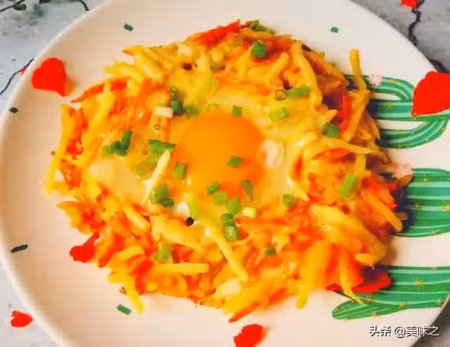 1、土豆一個,胡蘿蔔半截,擦成細絲,放入適量薑末。