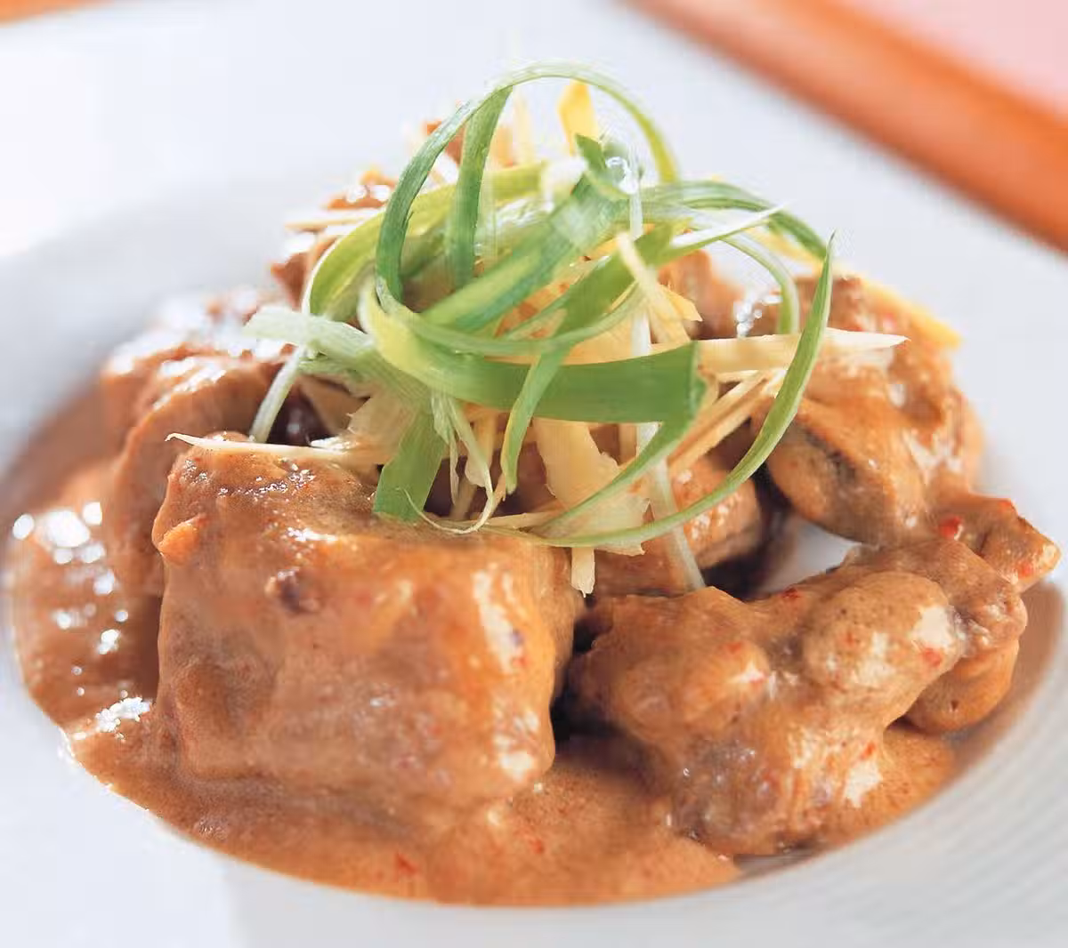 3 至湯汁濃稠後即可取出排骨,配上嫩薑絲、蔥絲趁熱食用。