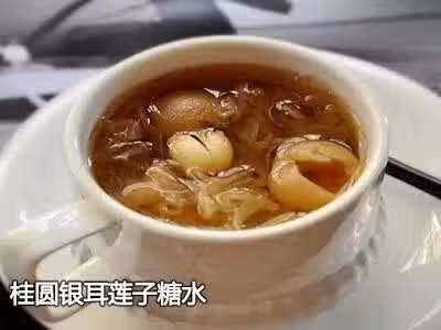 銀耳50克,桂圓50克,蓮子15顆,冰糖適量