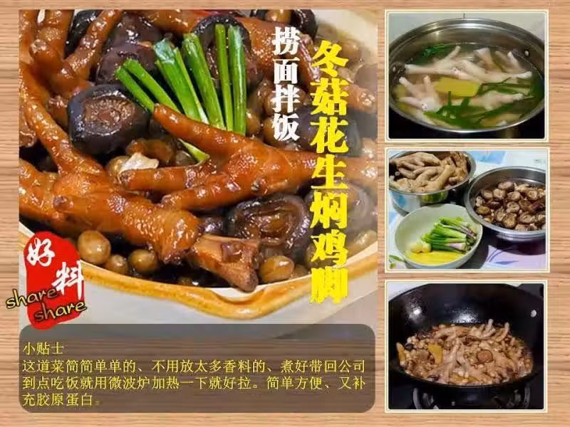 2. 冬菇和花生用水發好,切好料頭:薑、蔥、蒜頭備用