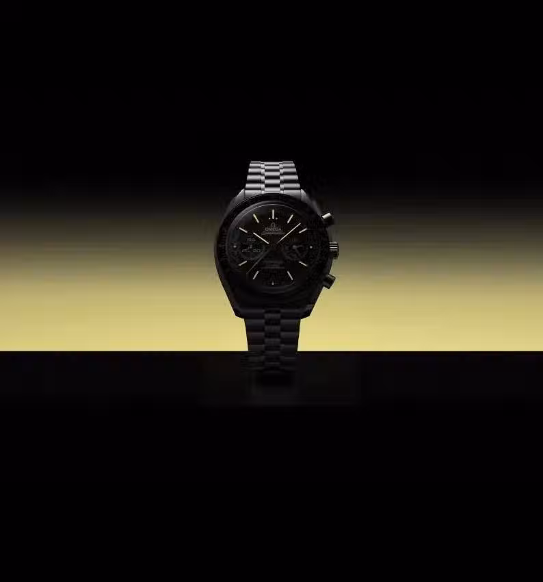 黑色箭形小時刻度經鑽石拋光和倒角處理,覆以全新獨特的Super-LumiNova夜光塗層,在黑暗環境中散發出讓人驚喜的黃色夜光。錶盤上的「Speedmaster」與「Super Racing」字樣亦採用黃色。