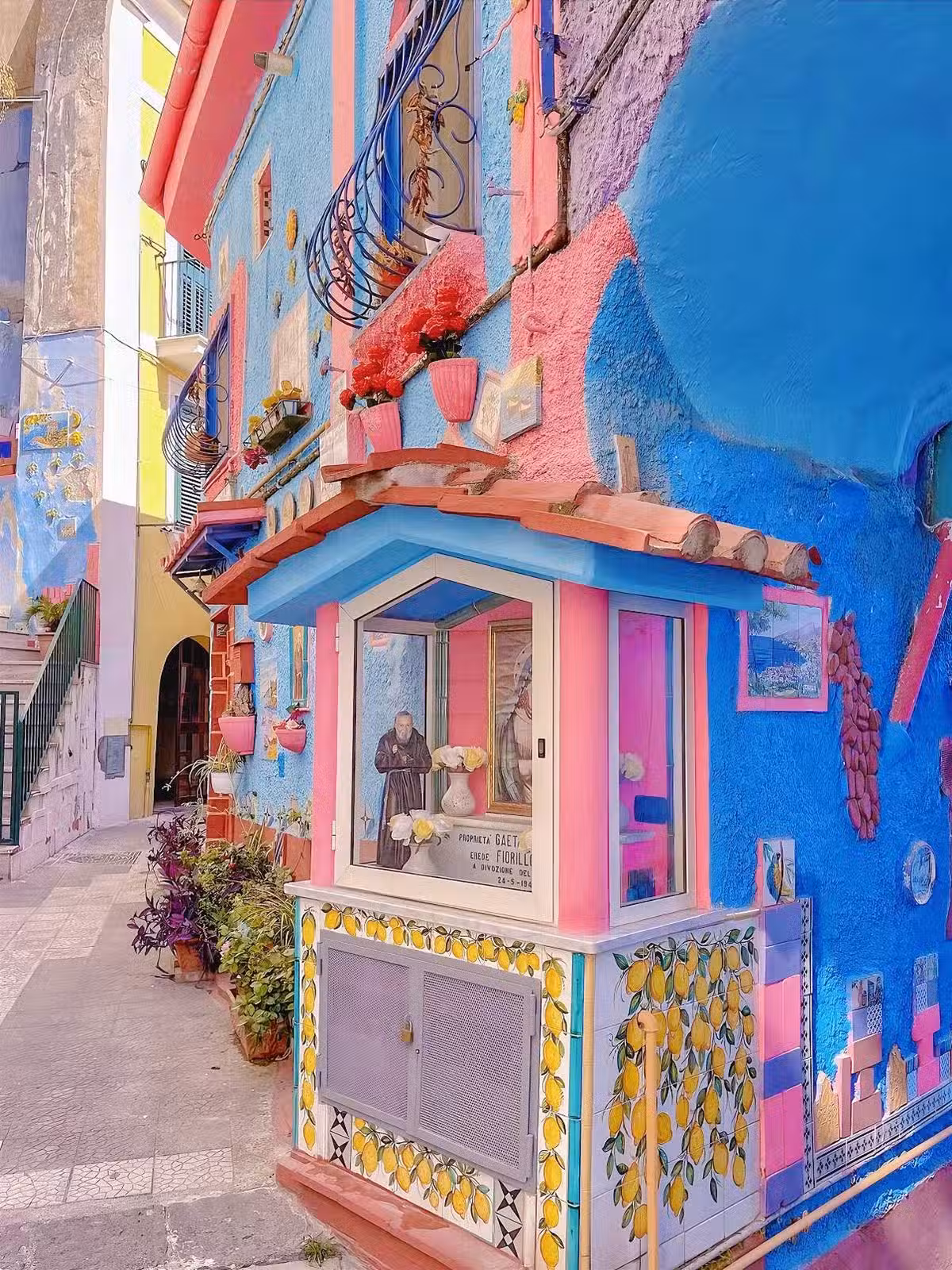 這是小鎮最令人印象深刻的地點,從主廣場導航步行,會發現這座色彩繽紛的建築,一定要拍照記錄!🔹日落時在 Pane & Panorama用餐
