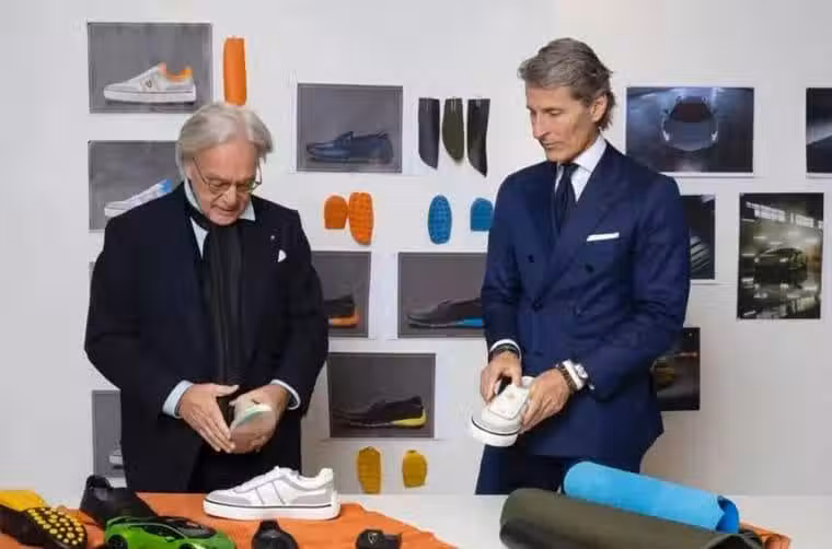 ▲藍寶堅尼執行長與總裁Stephan Winkelmann(右)在TOD』S總裁Diego della Valle(左)陪伴下參觀TOD』S的皮件鞋履工坊。