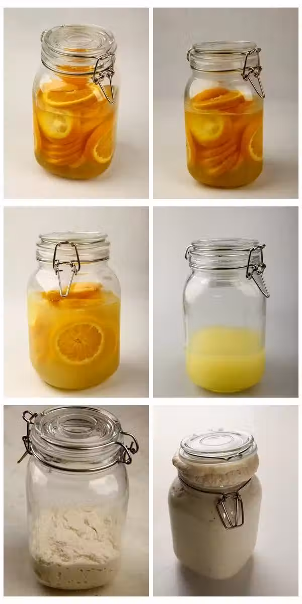 1、將玻璃瓶子高溫消毒,將橙子切片放入瓶子中,加入水和蜂蜜,放在28℃的室溫中。