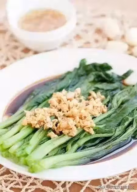 原料:油菜、豬肉餡、醬油、蔥、姜、蒜、料酒、香油、豆豉、白鬍椒。