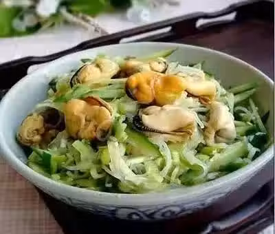 7、粉絲瀝干水分後,拌入黃瓜絲;