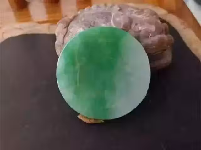 這是一塊切漲了的料子做了手鐲以後剩下的翡翠手鐲心,顏色是很漂亮,誘人的正陽綠,可惜中間豎著一條十分明顯的裂痕。不過趙顧問說了,只要是天然的料子,多多少少都會有瑕疵,不可能十全十美,但是在雕刻的過程中我們是可以儘量去避掉這些瑕疵的。