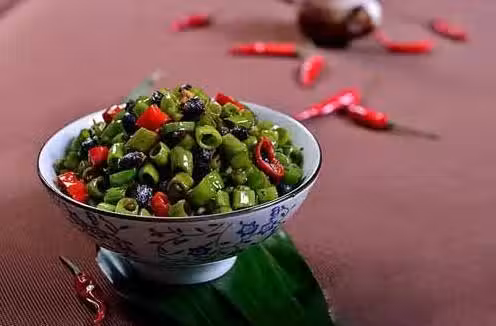 空心菜 (200克)、豆豉 (2勺)、洋蔥 (1塊)、大蒜 (6個)、大蔥 (1段)、鹽 (2匙)、醬青 (2匙)、紅椒 (1個)。
