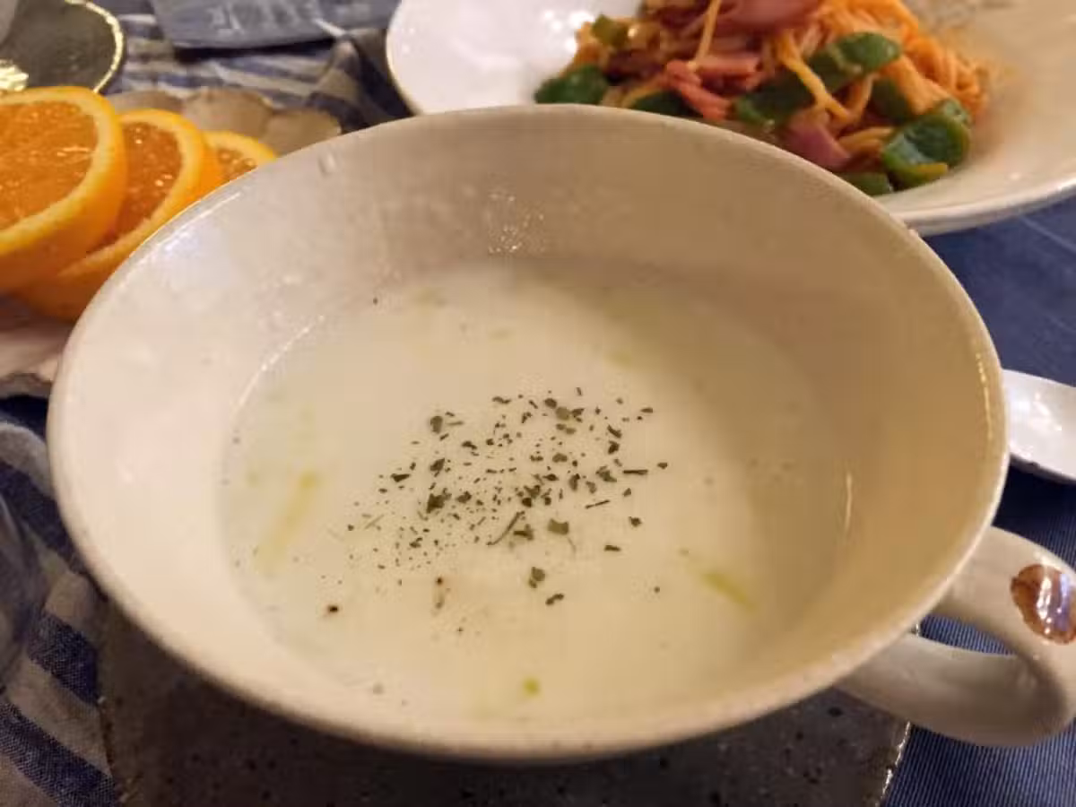 3、 將煮軟的馬鈴薯和洋蔥以果汁機(加少許水或牛奶)或食物調理器打成泥(可留一些馬鈴薯切塊,讓濃湯喝起來有口感)。