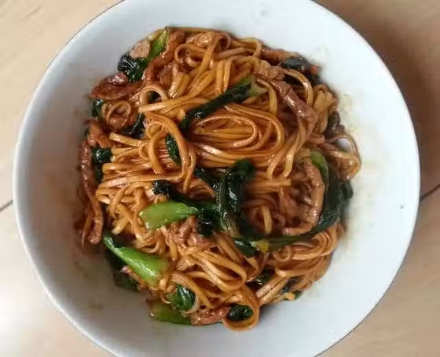 肉絲(多少看心情);青菜少許;麵條(個人的食量)