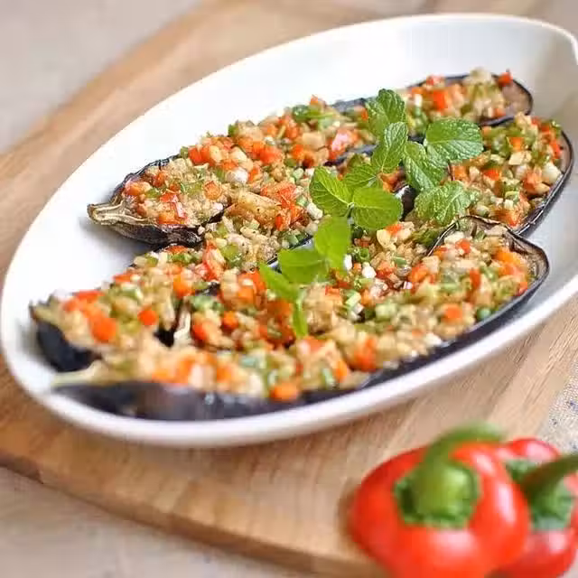 茄子2根、蒜2頭、青椒1個、紅椒1個、洋蔥半個、鹽適量、糖適量、蚝油適量、黑胡椒適量、孜然粉適量