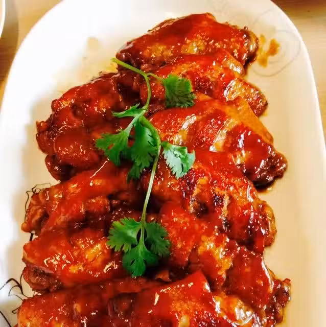 將之前腌制的料倒入,加水沒過雞翅,中火十五分鐘,加入少量蜂蜜水,大火將湯汁收干,擺盤ok