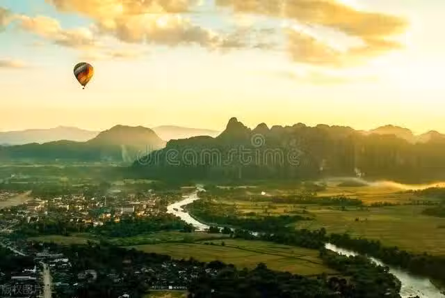 這裡的熱氣球號稱是全世界最便宜的熱氣球, 價格只要90美金, 是萬榮遊玩必推薦的活動之一,整個熱氣球過程約四十分鐘,日出和日落時段為最佳。