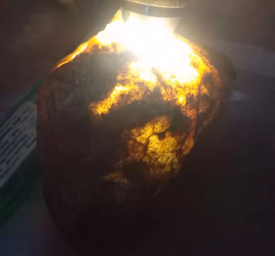 經過跟貨主商量之後,會保留大部分的皮殼,做一件比較新穎獨特的手把件,準備雕刻一個麒麟的題材,師傅先把開窗位磨出大概的輪廓,然後在設計畫稿。