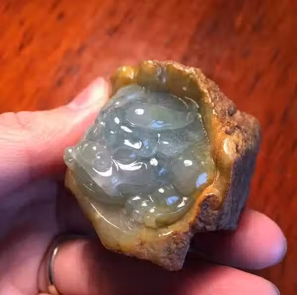 教科書般翡翠原石皮殼雕刻運用,地麒麟活靈活現
