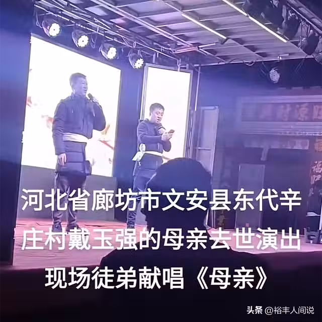 其中最引人關注的當屬楊光,他除了繫著白布在台上獻唱之外,還表演口技等等,肅穆的場景瞬間變得歡愉起來。