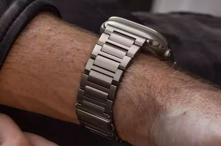 ▲美國有3C配件品牌替Apple Watch Ultra打造出鈦金屬鍊帶配件,提供錶主原廠錶帶以外的選擇。Source:SANDMARC