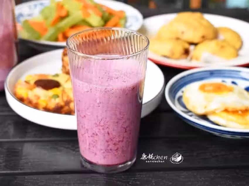 桑葚又稱為桑果,桑葚也是春天的水果,桑葚有著夢幻的紫色,用它做成奶昔粉紫色,做桑葚奶昔跟草莓奶昔相似,用了100克桑葚、200克酸奶和100克牛奶,紫色的奶昔還可以用藍莓這種水果和酸奶以及牛奶搭配。
