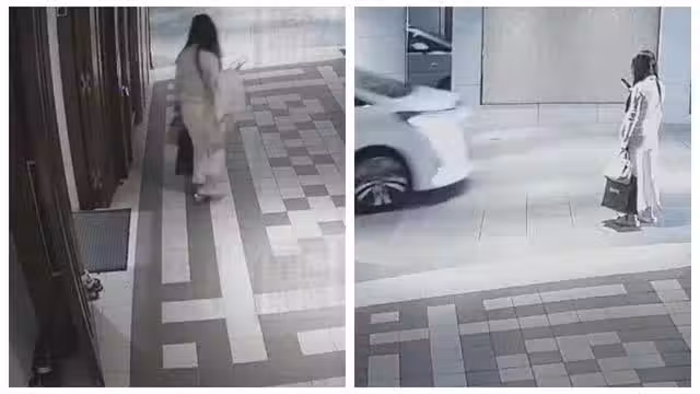 這是媒體公布的監控截圖,圖片中一名長發女子正在門外等人,