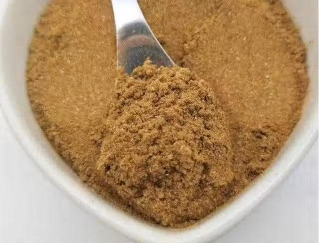 配方4:八角30%,丁香5%,花椒4%,雲木香3%,肉豆蔻3%,砂仁5%,小茴香10%,高良薑4%,肉桂12%,山奈7%,草豆蔻5%,薑8%,草果4%;