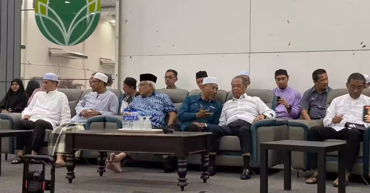 隨著慕尤丁的抵步,祈禱大會也剛好結束。國盟領袖也紛紛轉移到台上就坐,其他出席者則席地而坐,相信慕尤丁將發表談話。