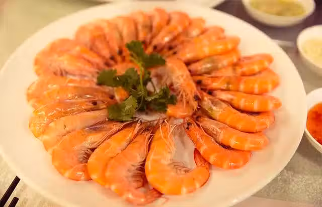 把撈起的蝦擺盤,圍成一個圓圈形狀。