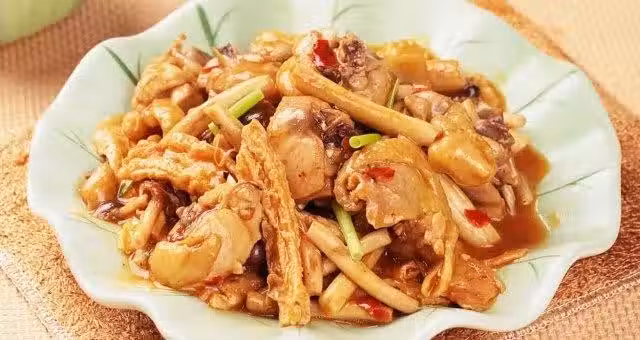 10 倒入汆過水的雞塊,翻炒至斷生。