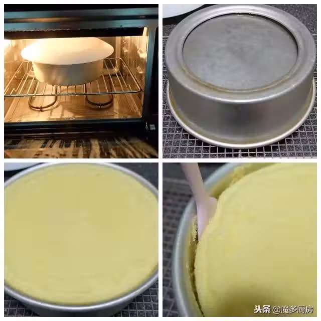 13、取一個大的平盤,盤裡抹上油,倒扣大蛋糕模具上,放進蒸汽烤箱,蒸60分鐘;