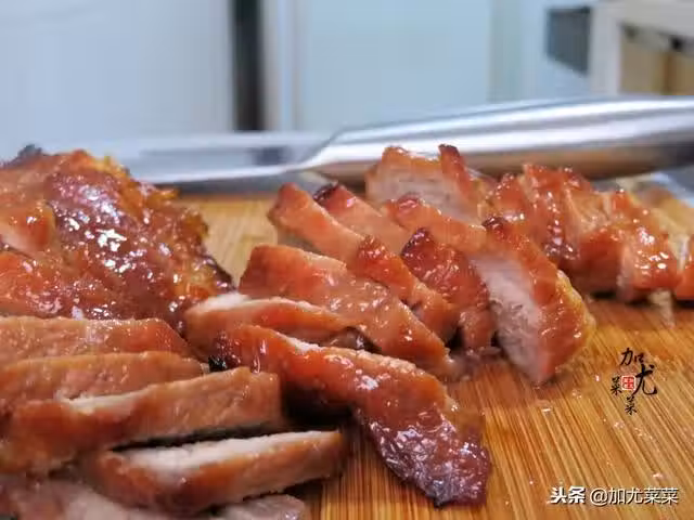4、最後烤好的叉燒肉,切成片擺盤即可上桌。