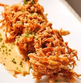 2.將金針菇表面沾上麵粉,抖掉多餘的麵粉;油鍋燒熱,下入處理好的金針菇煎炸,分多次炸,直至金針菇呈金黃色撈出即可。