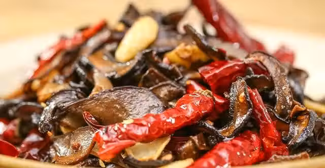 3.油鍋燒熱,加入花椒煸炒出香味後放入備用的牛肝菌片、干辣椒段,再調入適量的雞精、味精、鹽然後翻炒均勻撒上蔥末出鍋,倒在豆苗上即可。